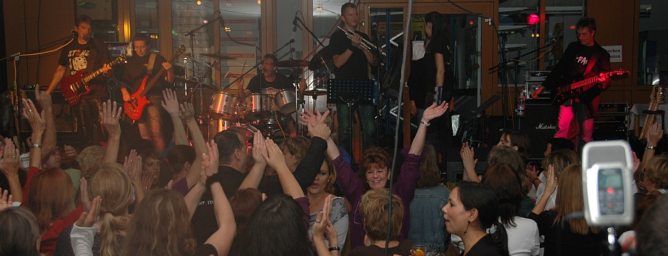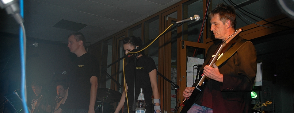 Werner R., Michael G., Matthias V., Martin H. bildeten die Urbesetzung. Danach kamen Tanja R-S., Laura-Maria L., Matthias S. & Mirjam M. hinzu. 2008, 2009, 2010 und 2011 gab es legendäre Betriebsfeste mit "special guests", in einer Form, die bis dahin undenkbar gewesen war.Ich hatte für dieses Vorhaben einiges an Equipment gekauft, eifrig Gitarre geübt und viel gesungen. Das Griffbrett war mir nicht so fremd, aber ich habe sehr wohl zu spüren bekommen, dass mehrere gesangslose Jahre nicht spurlos an einem Sänger vorbei ziehen. Nach dem ersten Auftritt lag es nahe, vielleicht doch mehr daraus zu machen.